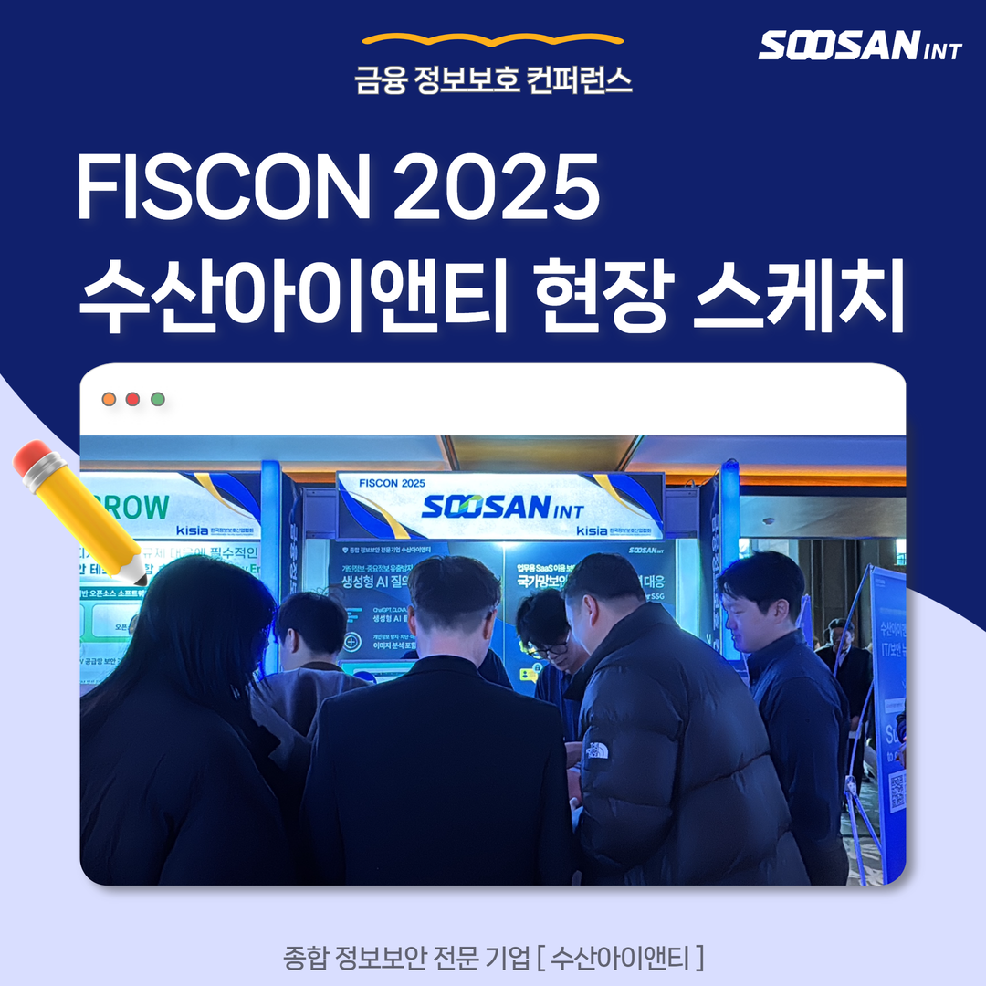 11/20(목), 수산아이앤티가 'FISCON 2025(금융 정보보호 컨퍼런스)'에 참가해 변화하는 금융보안에 대응하는 차세대 보안 솔루션들을 선보이고 왔습니다. 특히 생성형 AI 확산으로 높아진 내부정보 보호와 접근 통제에 대한 관심이 현장에서 두드러졌으며, 금융기관 담당자분들과 실무 중심의 상담을 활발하게 진행하고 왔는데요. 👉자세한 현장을 수산아이앤티 공식 블로그를 통해 소개합니다.