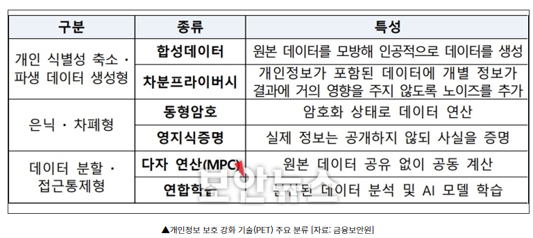 금융보안원은 인공지능(AI) 시대에 데이터 활용과 프라이버시 보호를 동시에 달성할 수 있는 ‘개인정보보호 강화 기술’(PET·Privacy Enhancement Technique) 활용 로드맵을 제시했다. 금용보안원은 데이터 경제 활성화에 따라 중요성이 커진 ‘PET’의 금융권 활용 방안을 담은 연구보고서를 배포했다고 24일 밝혔다.
