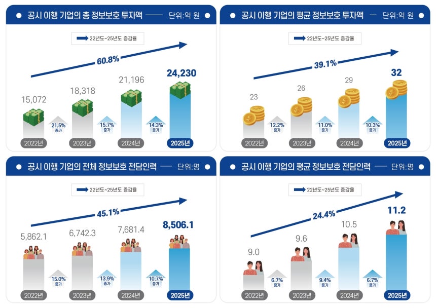 ▲ 정보보호 투자액·정보보호 전담인력 모두 상승